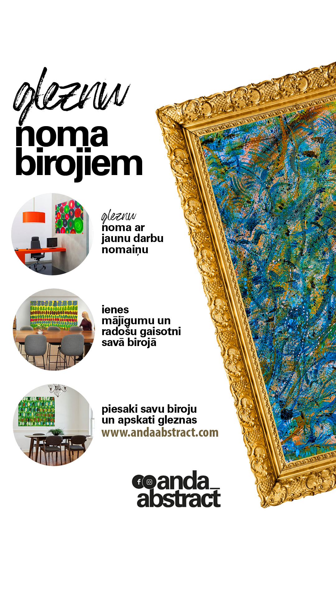 “Mākslinieces Andas_Abstract gleznas spīd – no tām izstaro prieku un enerģiju. Māksliniece prasmīgi un bez pārspīlējumiem savās gleznās izmanto zelta krāsu, kas piešķir darbiem greznu efektu. Andas darbi ir ļoti piemērota izvēle spēcīgam un elegantam akcentam lakonisma cienītājiem un minimālisms gan birojos, gan privātmājās un dzīvokļos.”